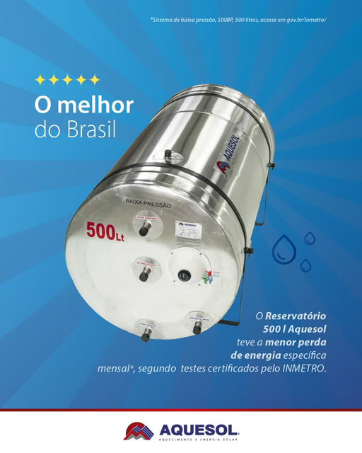 Nossos reservatórios térmicos acabam de ser reconhecidos, e o destaque maior vai para o reservatório de baixa pressão, 500BP de 500 litros que teve a menor perda de energia específica mensal na categoria, segundo testes certificados pelo Inmetro. Mas sabe o que mais? Nossos reservatórios contam com: